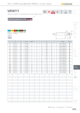 UH (< 70HRC) and MH (30÷70HRC) - Corner radius