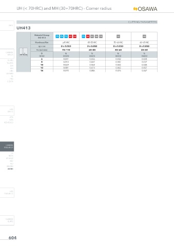 UH (< 70HRC) and MH (30÷70HRC) - Corner radius