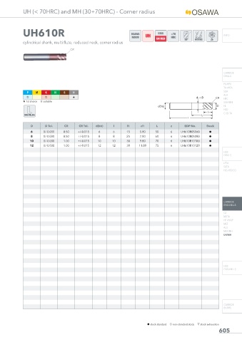 UH (< 70HRC) and MH (30÷70HRC) - Corner radius