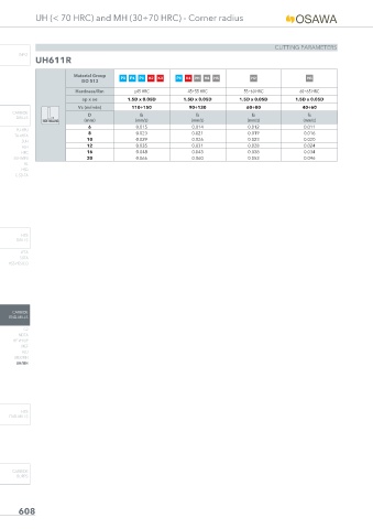 UH (< 70 HRC) and MH (30÷70 HRC) - Corner radius