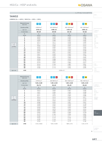 Vc (m/min) 40÷60 30÷50 25÷35 15÷25 DRILLS