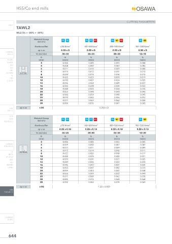 DRILLS Vc (m/min) 30÷50 25÷35 20÷30 12÷18