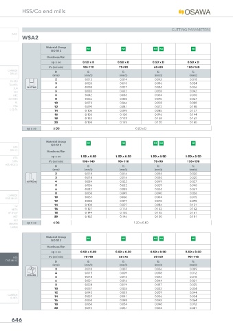 HSS Vc (m/min) 70÷90 55÷75 50÷60 90÷110