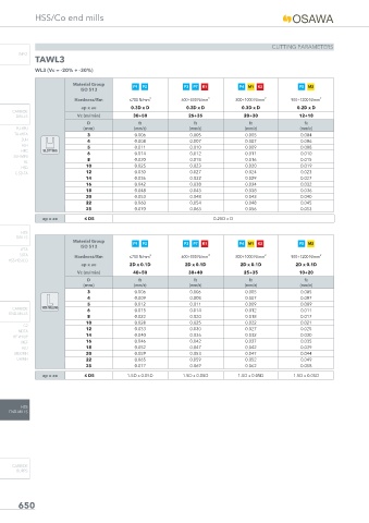 Vc (m/min) 40÷50 30÷40 25÷35 10÷20