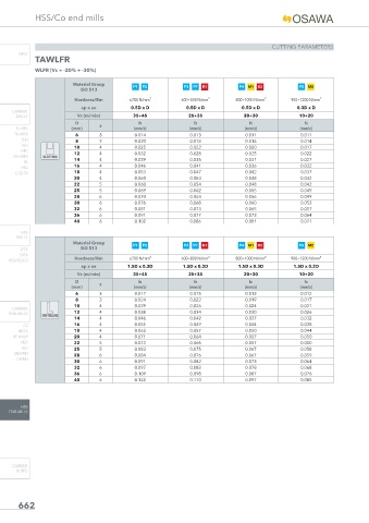 DRILLS Vc (m/min) 35÷45 25÷35 20÷30 10÷20