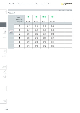 Vc (m/min) 260÷300 230÷270 200÷240 280÷320