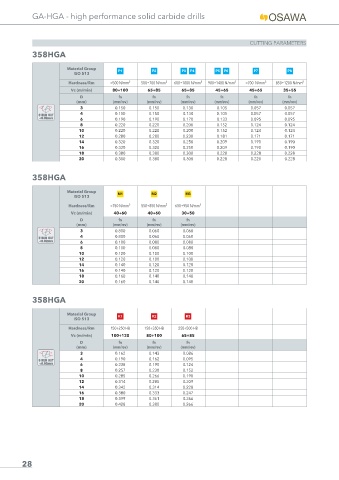 Vc (m/min) 80÷100 65÷85 65÷85 45÷65 45÷65 35÷55