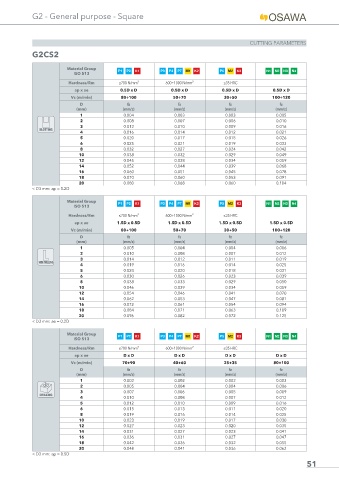 Vc (m/min) 70÷90 40÷60 25÷35 80÷100