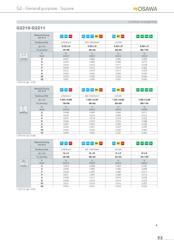 Vc (m/min) 60÷80 40÷60 25÷35 70÷100