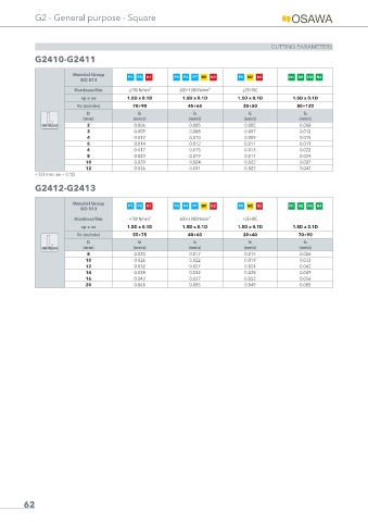 Vc (m/min) 55÷75 40÷60 20÷40 70÷90