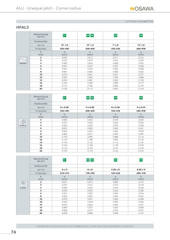 PARAMETERS SUGGESTED WITH HIGH POWER MILLING CHUCK AND STABLE MACHINING CONDITION