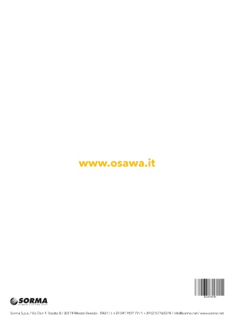 www.osawa.it Sorma S.p.a. / Via Don F. Tosatto 8 / 30174 Mestre Venezia - ITALY / t. +39 041.959179 / f. +39 02.57760374 / info@sorma.net / www.sorma.net